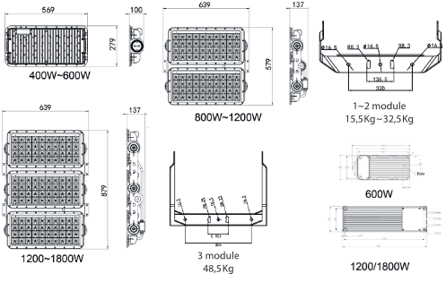 Tensión de entrada 220-400 VDC CCT: 2200K-5700K (RGB Optional)